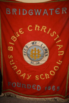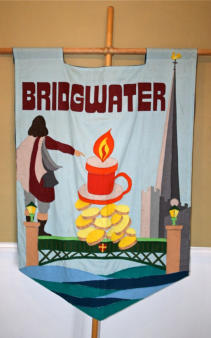 Churches Easter procession 1970s. The shield shaped textile and felt banner